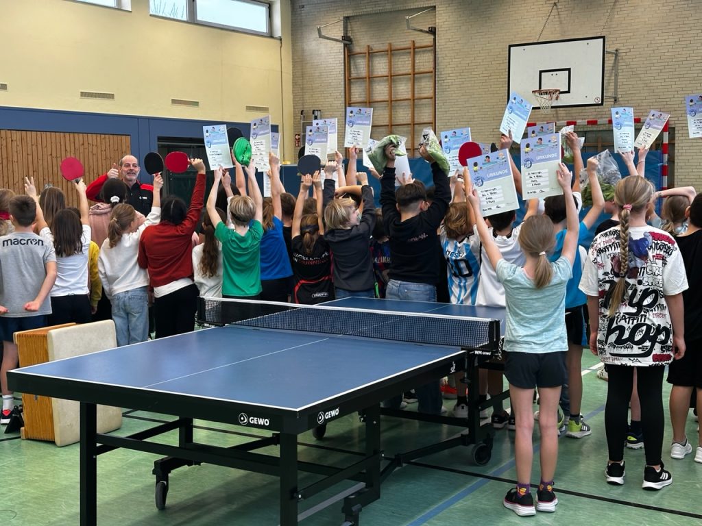 Zwei Tischtennisspieler vom SC Hemmingen-Westerfeld ermöglichten unseren 4. Klassen im Dezember einen ganzen Vormittag Tischtennis zu spielen. Sie bauten ihre Tischtennisplatten auf und erklärten den Kindern die Tischtennisregeln. Es wurde viel Rundlauf gespielt.